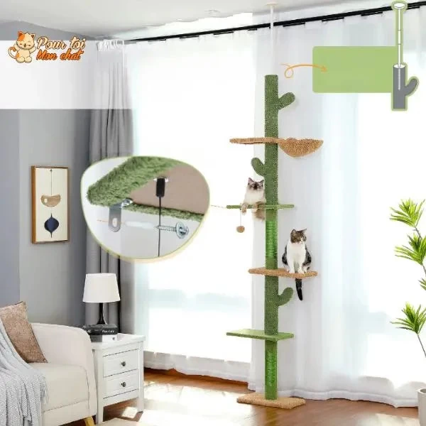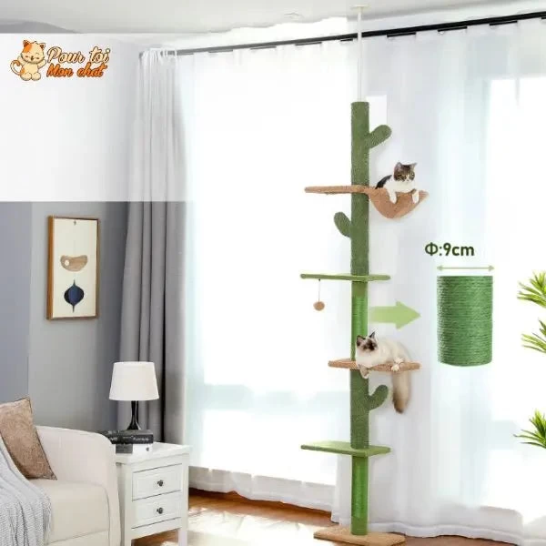 Offrez à votre chat bien-aimé le cadeau du confort et du style avec cet arbre à chat en forme de cactus. Doté de cinq niveaux différents dans un design de cactus chic, il apporte de la sophistication à n’importe quelle maison. Vos chats adorent grimper et descendre, ce qui leur procure des heures de divertissement. Chaque niveau est doté de coussins super doux pour un confort ultime, leur permettant de se détendre dans le plus grand style à tout moment. Sa capacité unique à s’accrocher aux murs ajoute une touche d’ingéniosité à l’aspect et à l’ambiance de votre maison.