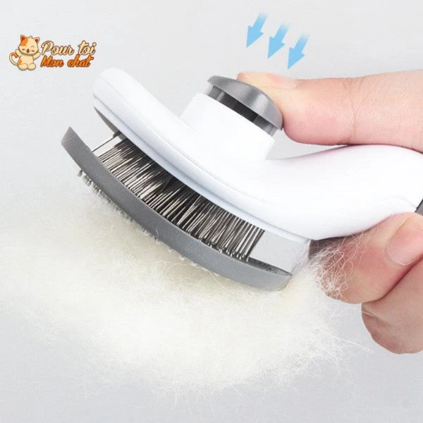 Son système innovant de nettoyage intégré permet en une pression de doigt de repousser l’amas de poils retirés à la surface de la brosse et de les éliminer au fur et à mesure.