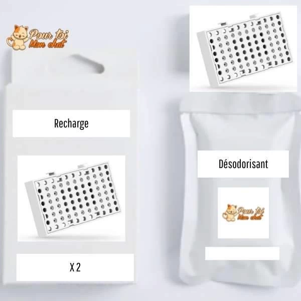 Ce diffuseur automatique placé à proximité de la litière capture immédiatement toute diffusion de mauvaises effluves en projetant un spray purifiant et neutralisant.