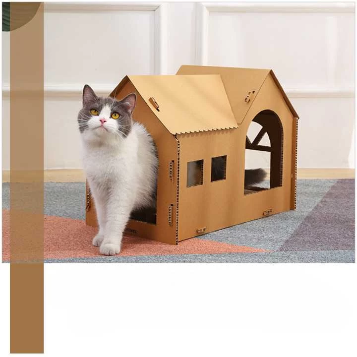 MAISON DE CHAT A GRATTER SEMI-FERMÉE EN PAPIER ONDULÉ