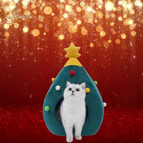 MonBeauChatPin™ est une jolie niche confortable en forme de sapin décoré qui accueillera votre animal pour de longues siestes réparatrices.