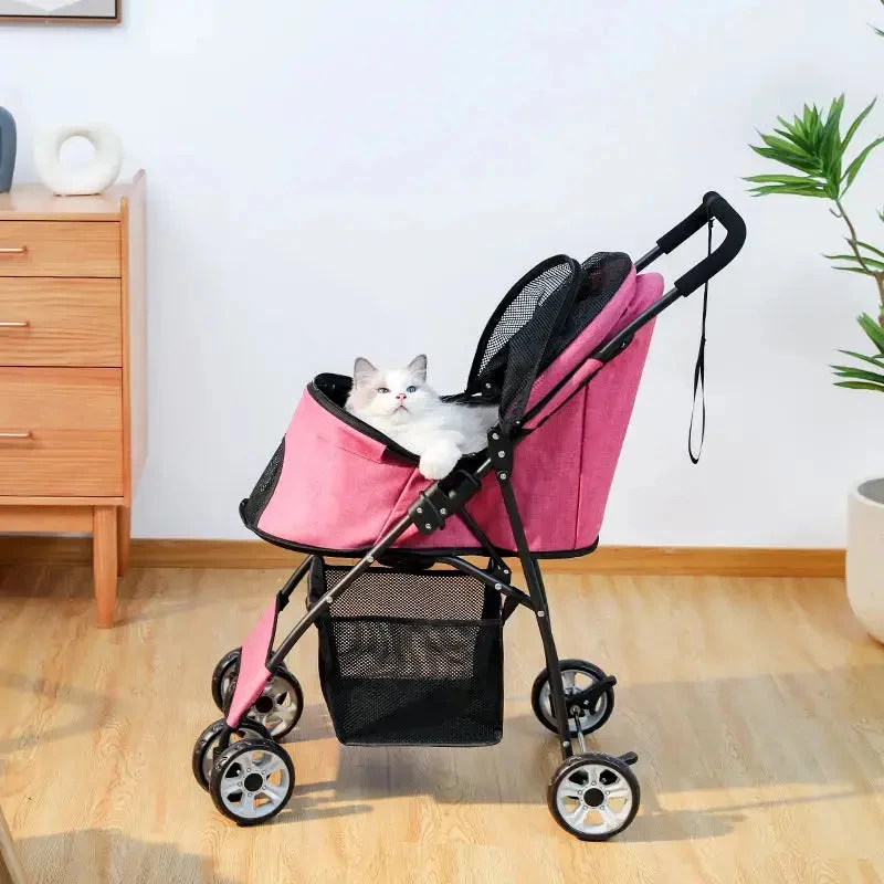 Voici la poussette pliante rose avec fenêtre en filet pour chats ! Cette poussette offre un maximum de sécurité et de commodité pour votre bébé à fourrure bien-aimé.