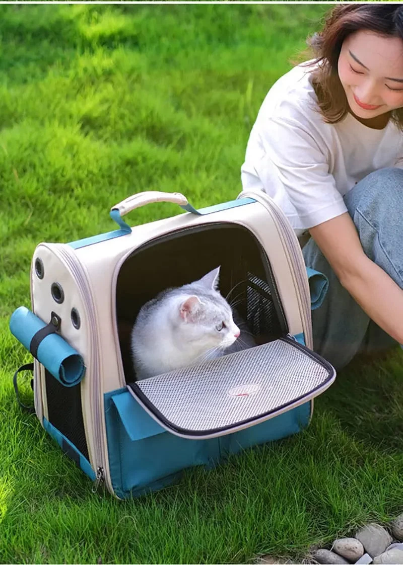 SAC À DOS BLEU PLIABLE ET VENTILÉ POUR CHAT