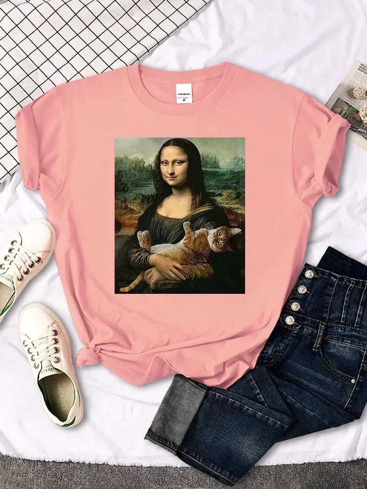 T-SHIRT MONA LISA ÉTREIGNANT UN CHAT